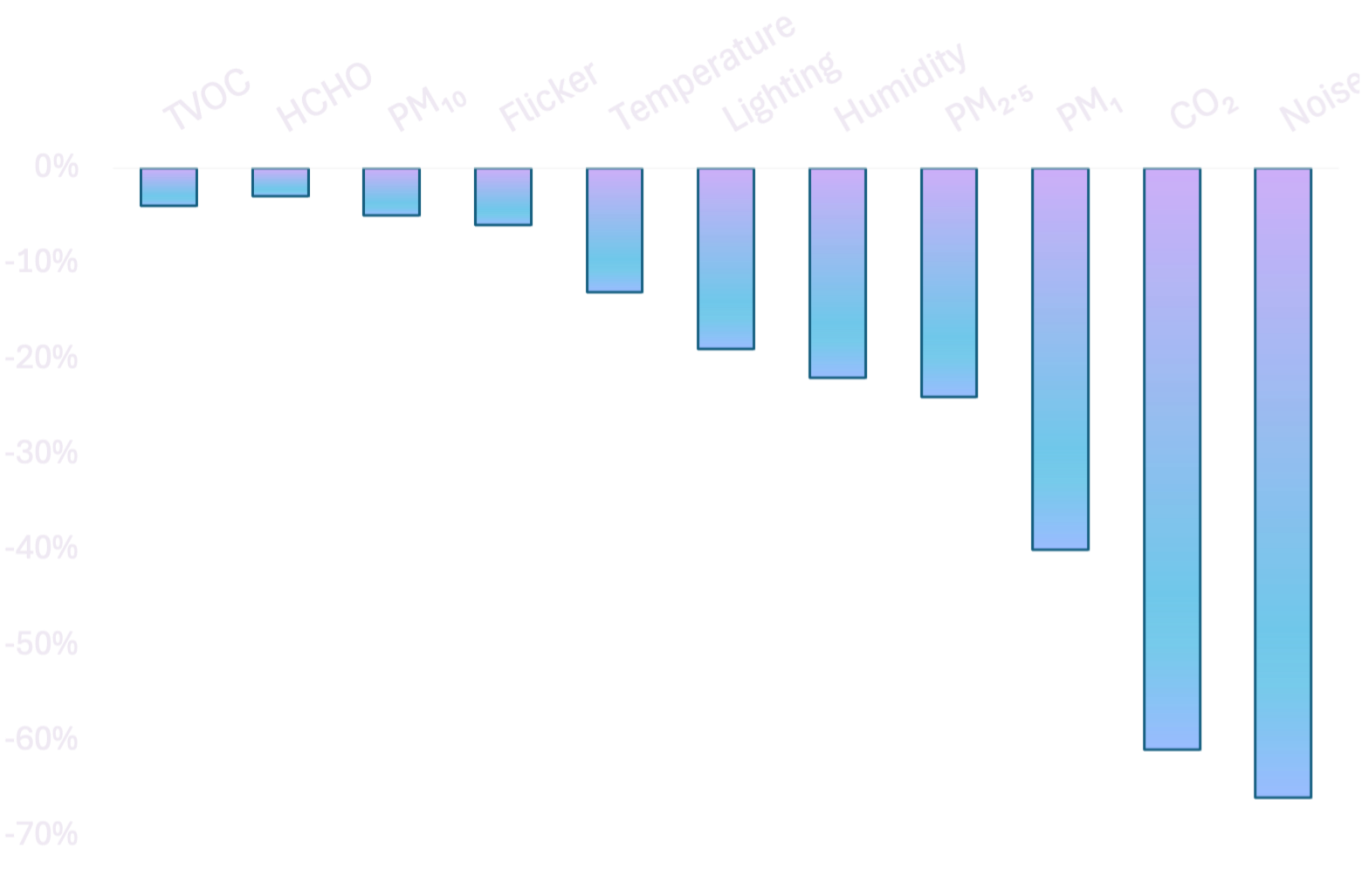 Few homes or offices are optimized for productivity. Our tests show that even on the premises of well-known global companies, the air and light quality can be so poor productivity is reduced by over 50%This equals working 4+ hours overtime - every day